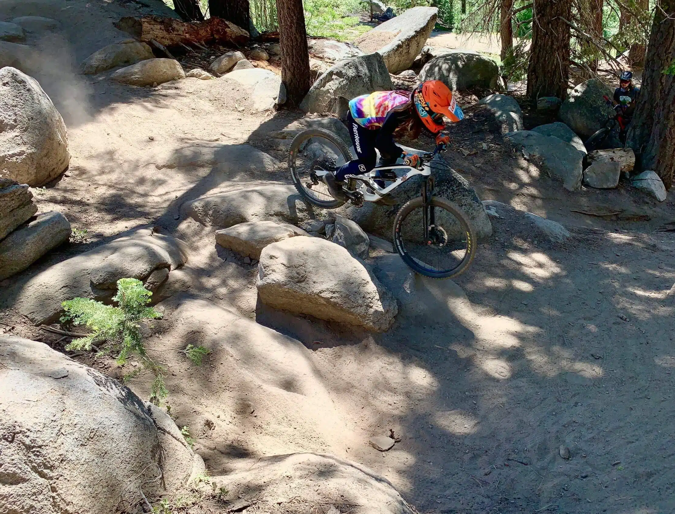 Campers tackle technical singletrack, work on drops, jumps, and rock features, and refine advanced skills like line choice, speed management, and riding with flow. Coaching is progression-based, we meet each rider where they are and help them break through to the next level.